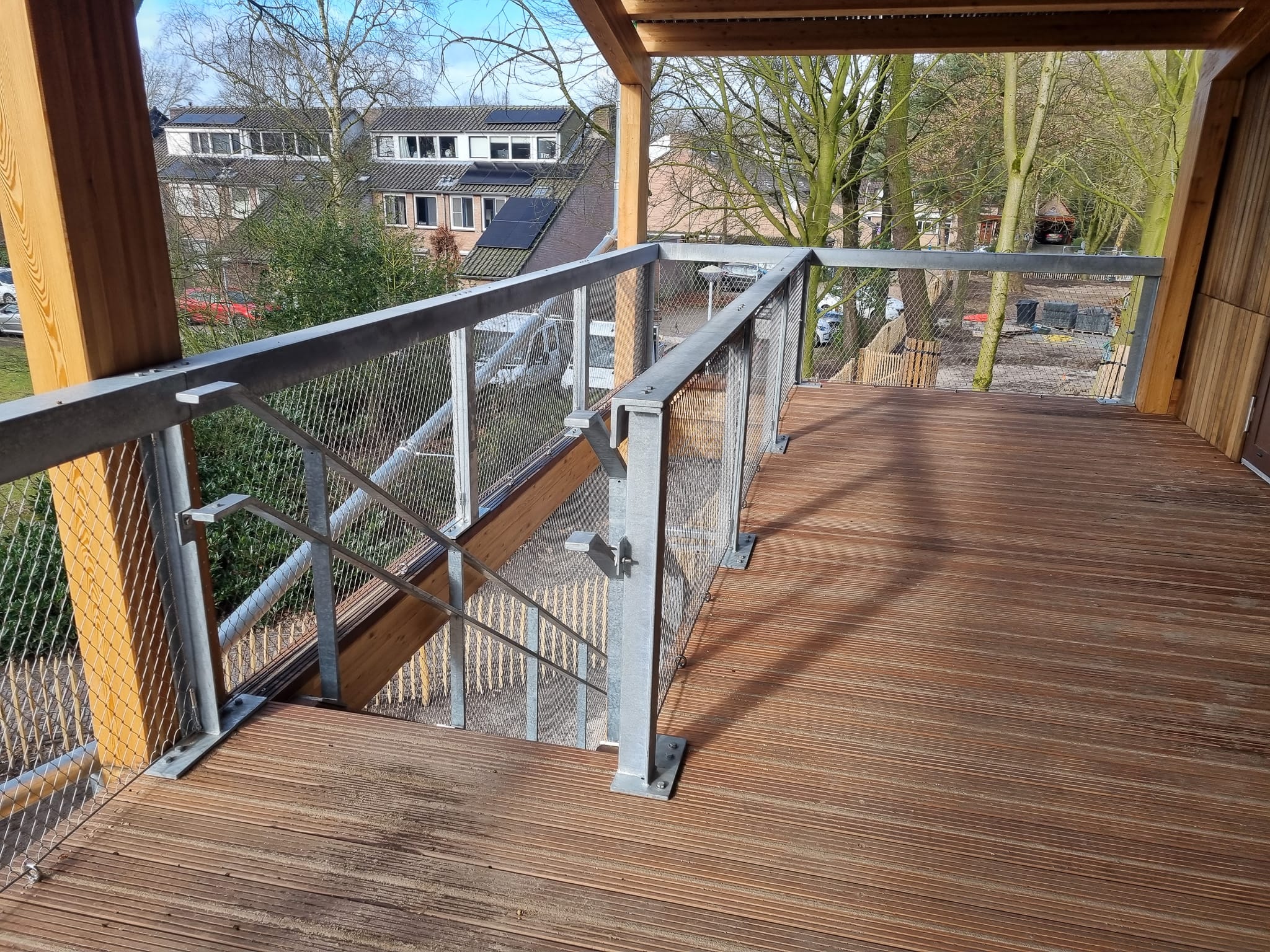 De toepassing van staal past perfect binnen een schoolomgeving waar veiligheid, duurzaamheid en uitstraling samenkomen. De balustrades, hekwerken en poorten met RVS gaas zorgen niet alleen voor een robuuste en onderhoudsvriendelijke afwerking, maar dragen ook bij aan de open en toegankelijke sfeer van het gebouw. Elk onderdeel werd met zorg ontworpen en gemonteerd, met oog voor detail én voor de kinderen die hier dagelijks gebruik van maken.